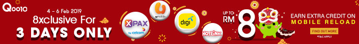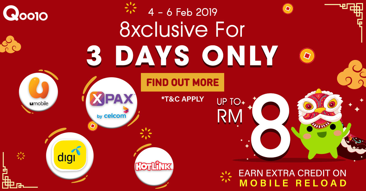 Qoo10 (MY): Earn Extra Credit up to RM8 on Mobile Reload @Qoo10